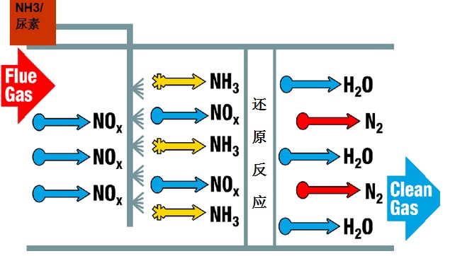 选择性非催化还原(Selective Non-Catalytic Reduction,以下简称为SNCR)技术是一种成熟的商业性NOx控制处理技术。SNCR方法主要在800~1250℃下,将含氮的药剂喷入烟气中,将NO还原,生成氮气和水,如下图所示。